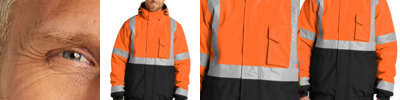 This warm performance soft shell combines superior weather protection with the highest class of visibility. 100% polyester woven shell with durable water-repellent (DWR) finish bonded to a water-resistant, breathable film insert and a 100% polyester microfleece lining Black bottom front and lower sleeves for a cleaner appearance Fabric waterproof rating: 5000MM Fabric breathability rating: 5000G/M2 Full-length interior storm flap with chin guard Durable, reflective 2-inch tape meets ANSI 107 requirements and provides 360-degree visibility on body and sleeves; tape is bonded to fabric Molded right chest, hand and center front zippers with rubber pulls Mic clips at shoulders Elastic cuffs with adjustable hook and loop closures and rubber tabs Adjustable drawcord hem This garment must be fully zipped to be in compliance with ANSI 107 standards